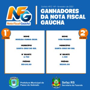 Para realizar a retirada do prêmio, vá até a Prefeitura Municipal, localizada na rua Rodolfo Antônio Bruckner, 445, no setor tributário com Juliano Andrade Nunes