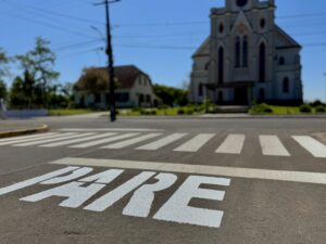 A Secretaria de Obras e Trânsito, está realizando a pintura da palavra “PARE” em diversos pontos das ruas do município. A ação tem como objetivo melhorar