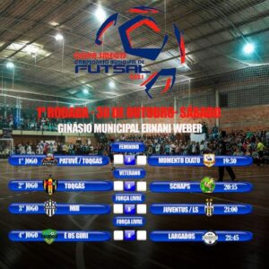 Sábado, dia 30/10, acontecerá a estreia da Copa SMECD de Futsal no ginásio Ernani Weber! Traga sua família e venha prestigiar a volta do campeonato