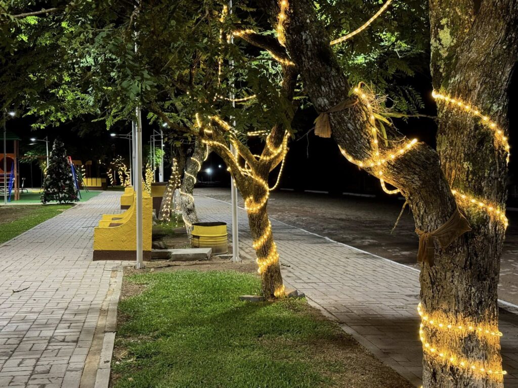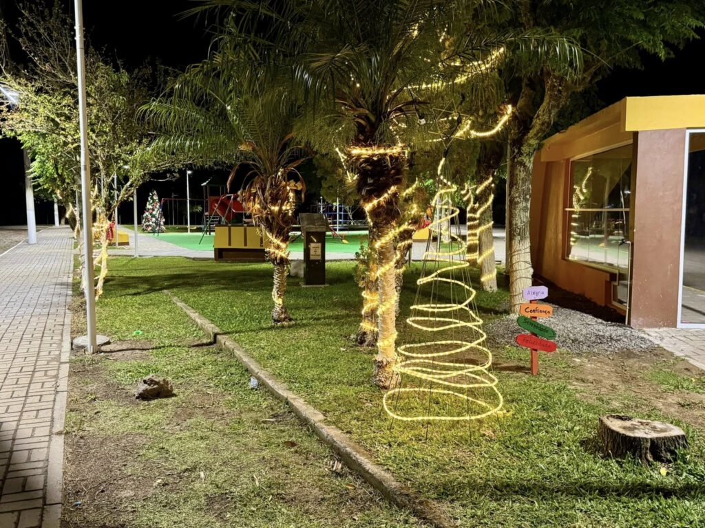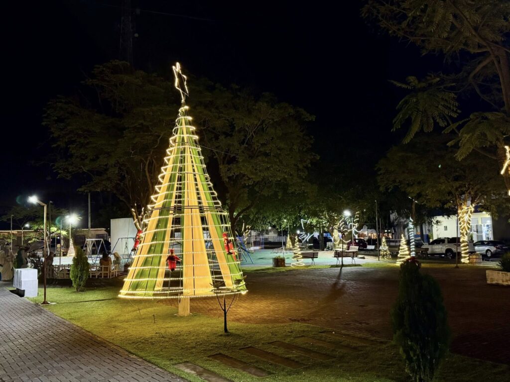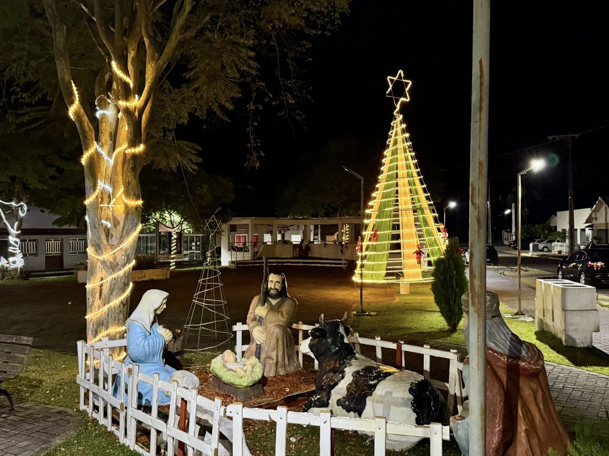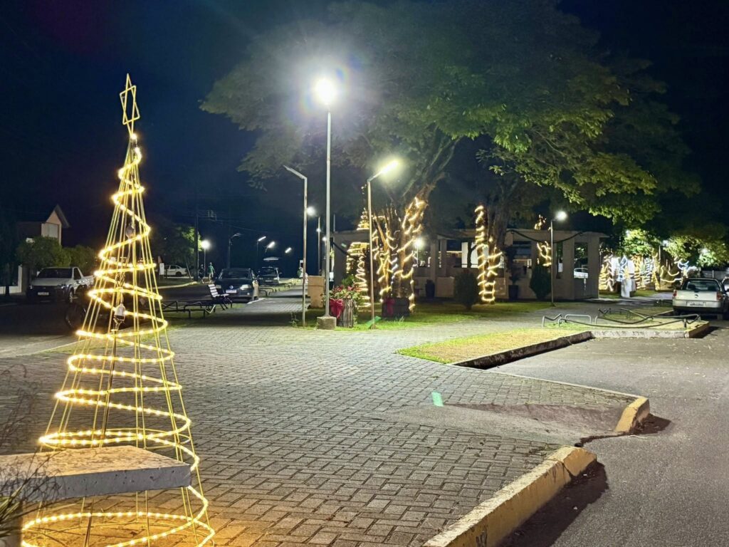 A Praça conta com presépio e os trevos e praças receberam iluminação especial com piscas, deixando a cidade ainda mais bonita.