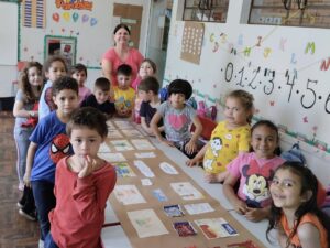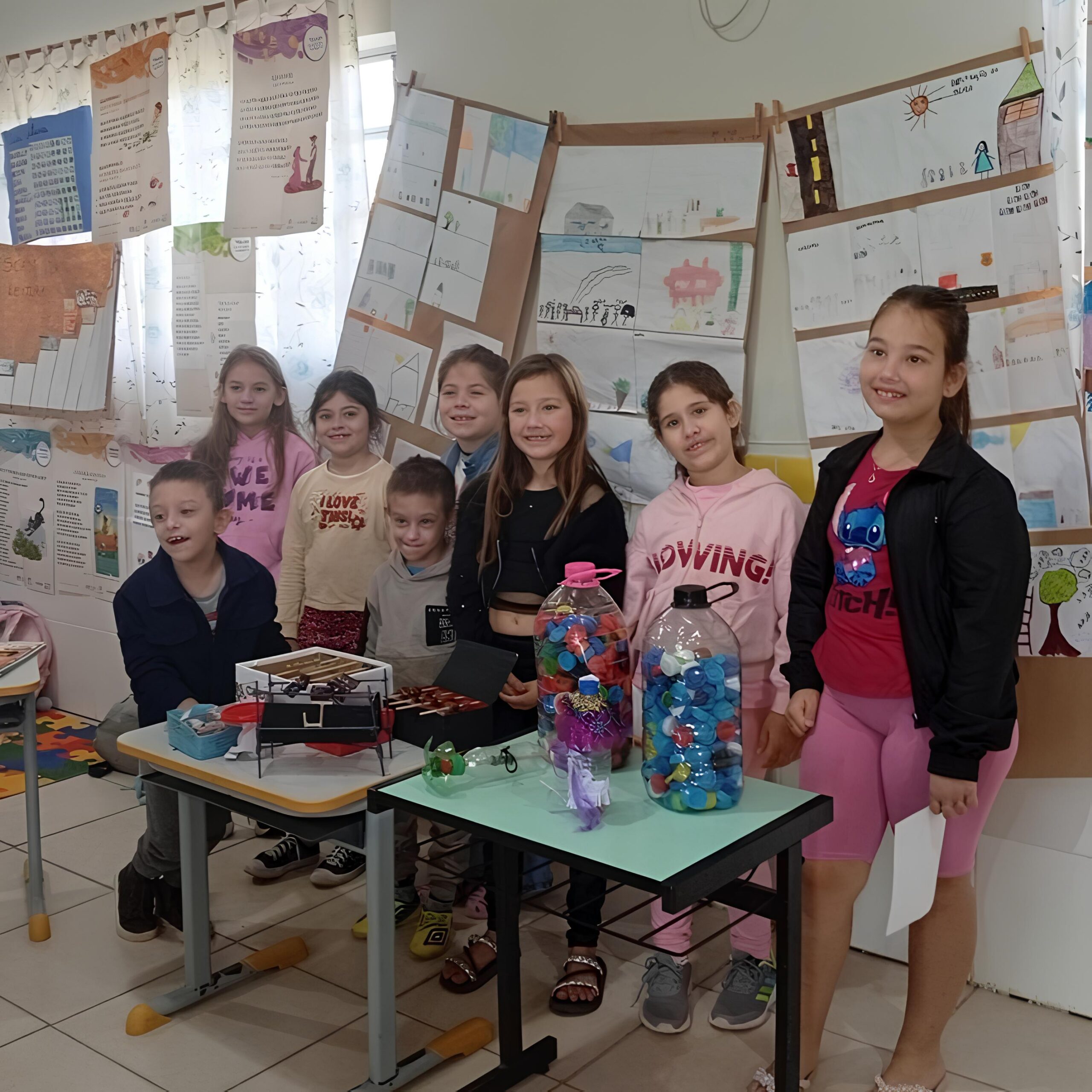 A escola mantém um projeto anual de coleta de materiais recicláveis, cujo valor arrecadado é revertido em materiais para uso escolar. Em julho, ocorreu uma ação de coleta de garrafas PET, premiando com R$ 200,00 a turma que recolhesse mais unidades. O 1º e 2º ano foram os vencedores.