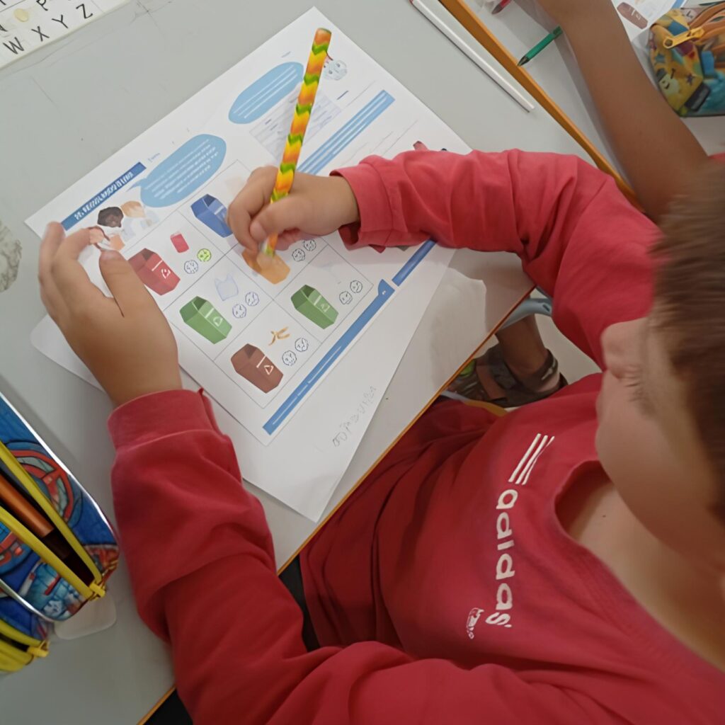 Os alunos registraram o aprendizado com desenhos e realizaram atividades do caderno Aprendendo a Ser Cidadão, reforçando o tema da coleta seletiva. As ações fazem parte do projeto contínuo de reaproveitamento de materiais desenvolvido ao longo do ano.