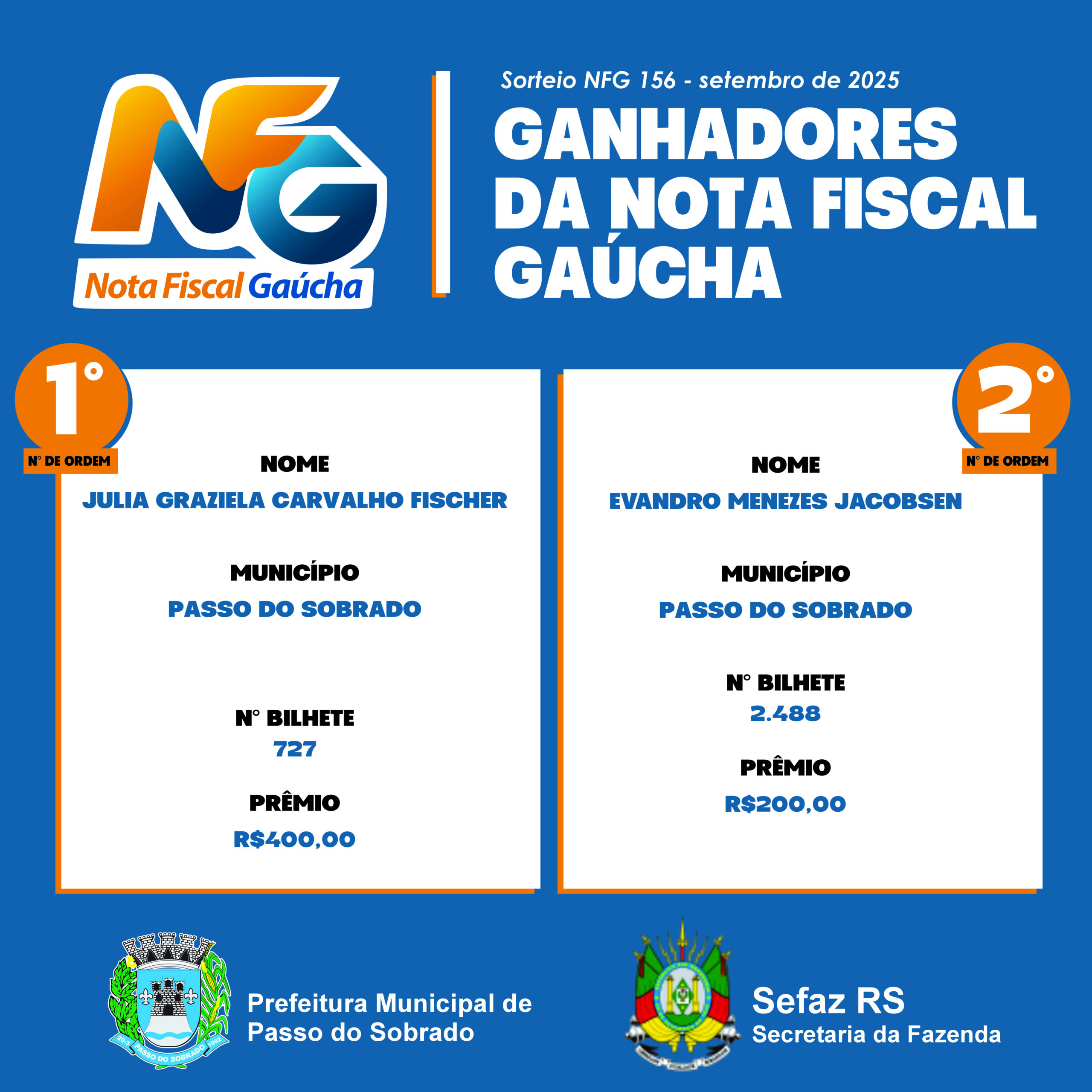 GANHADORES DA NOTA FISCAL GAÚCHA DO MÊS DE SETEMBRO