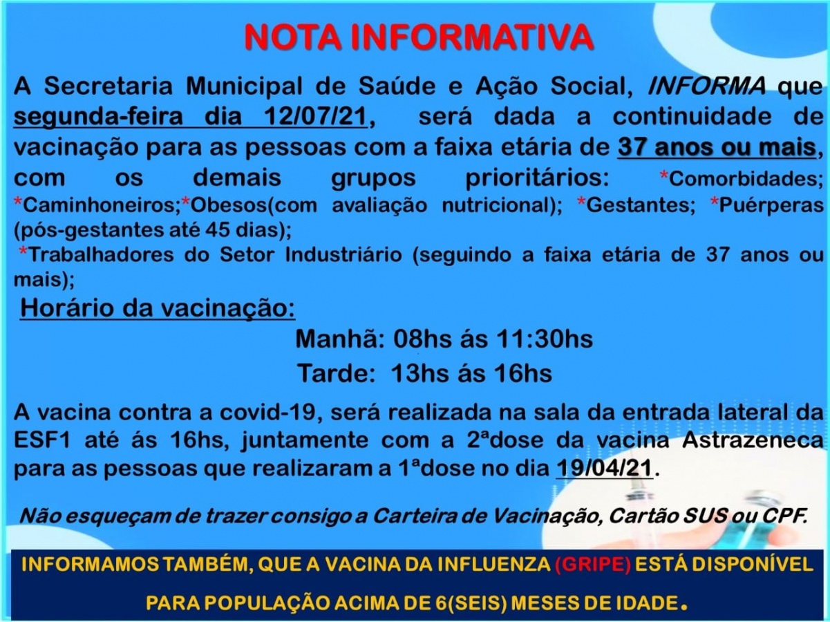 Início » Informativos - COVID-19 » Calendário de 2021-07-12