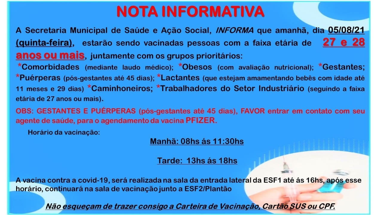 Início » Informativos - COVID-19 » Calendário de 2021-08-05