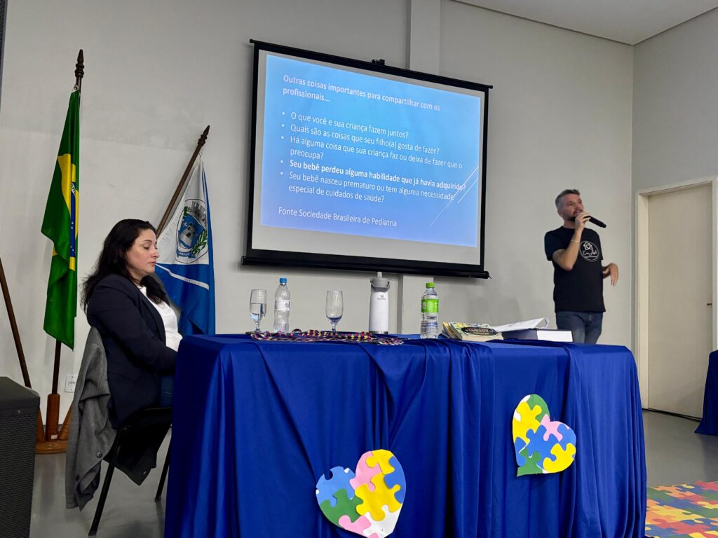 Durante a noite, os profissionais falaram sobre o Transtorno do Espectro Autista (TEA), explicando de forma clara o que é o autismo, o que significa ser uma criança atípica e quais são os diferentes níveis do espectro.