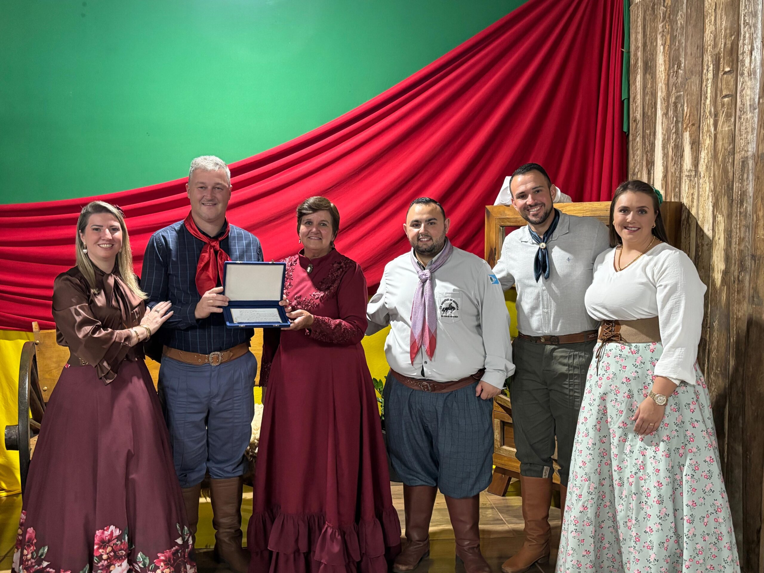 Durante a cerimônia, também foram homenageados o Deputado Federal Heitor José Schuch e o Prefeito de Santa Cruz do Sul, Sérgio Moraes, por suas importantes contribuições ao tradicionalismo.