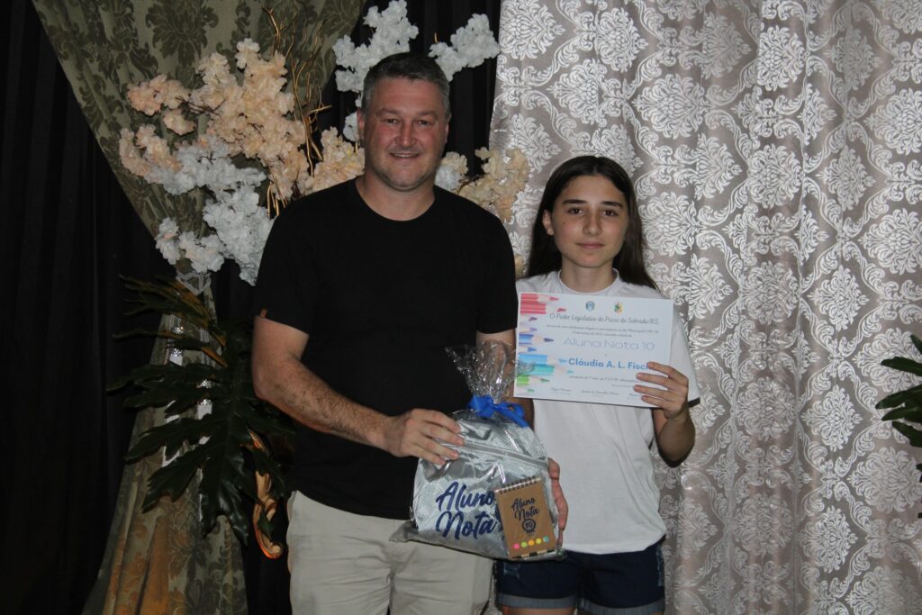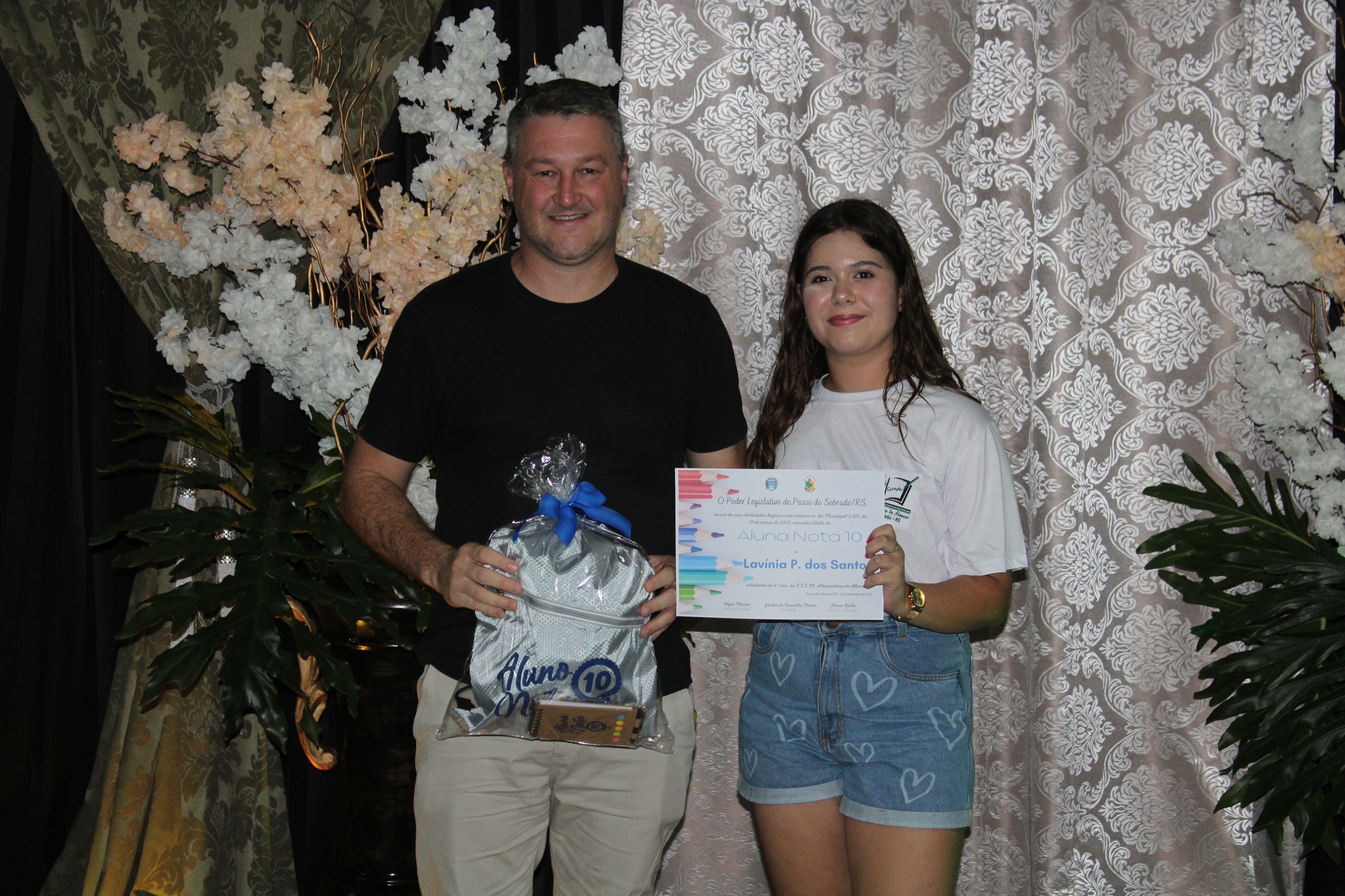 Na noite de ontem, 13 de dezembro o Prefeito Municipal Edgar Thiesen esteve participando do Aluno Nota Dez de 2023, o evento realizou-se no Ginásio Rui Barbosa tendo seu projeto tornado Lei em 2022 sob autoria do Vereador Mateus Freitas e alcança sua segunda edição em Passo do Sobrado, abrangendo as escolas polo do Município e escola estadual, que busca incentivar os alunos nas atividades curriculares.