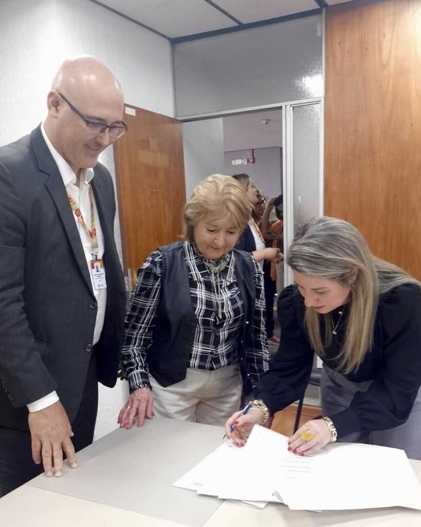 No ato de lançamento do Programa Família Gaúcha, realizado nesta quinta-feira (18/9), foram assinados os termos de adesão com a presença da Secretária de Governo Catiane Haas, Secretária Municipal de Assistência Social, Marlene Kroth Haas, e da Assistente Social Bárbara Brum, que representaram o Prefeito.