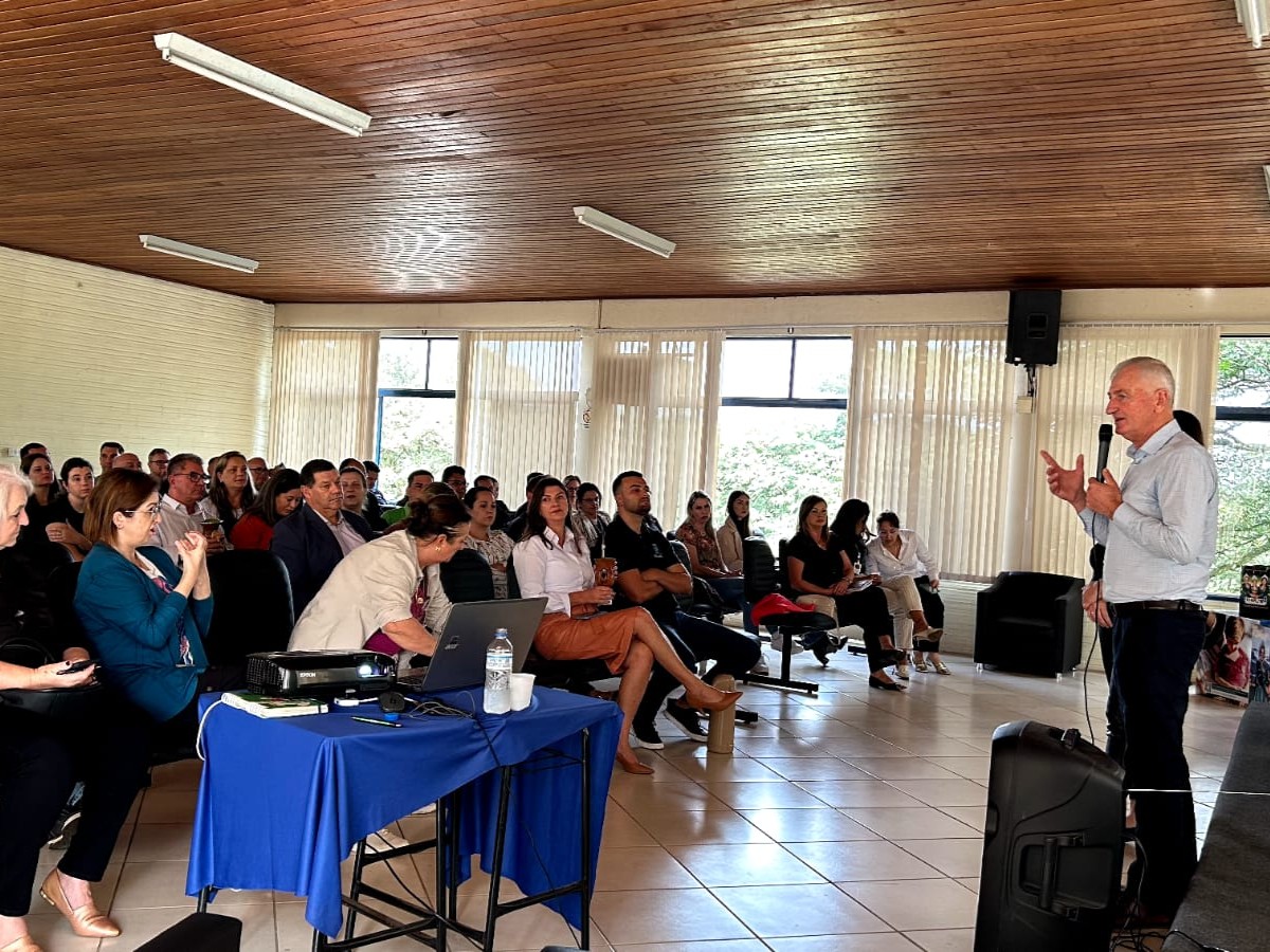 A reunião foi presidida pelo senhor Heitor Álvaro Petry, Presidente do Conselho Regional de Desenvolvimento do Vale do Rio Pardo, Vice-Presidente Carmen Lúcia de Lima Helfer.