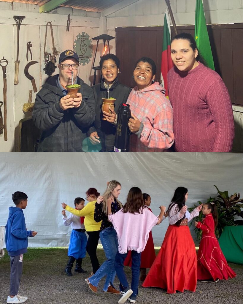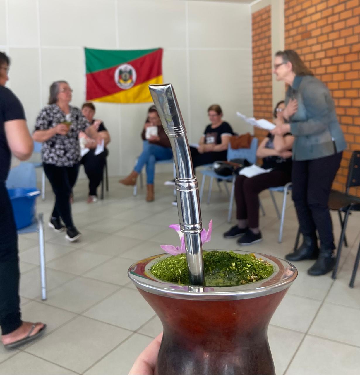Dentre as atividades, desenvolveu-se ensaio e declamação de poesias gaúchas, lanche coletivo, oficina e roda de chimarrão.