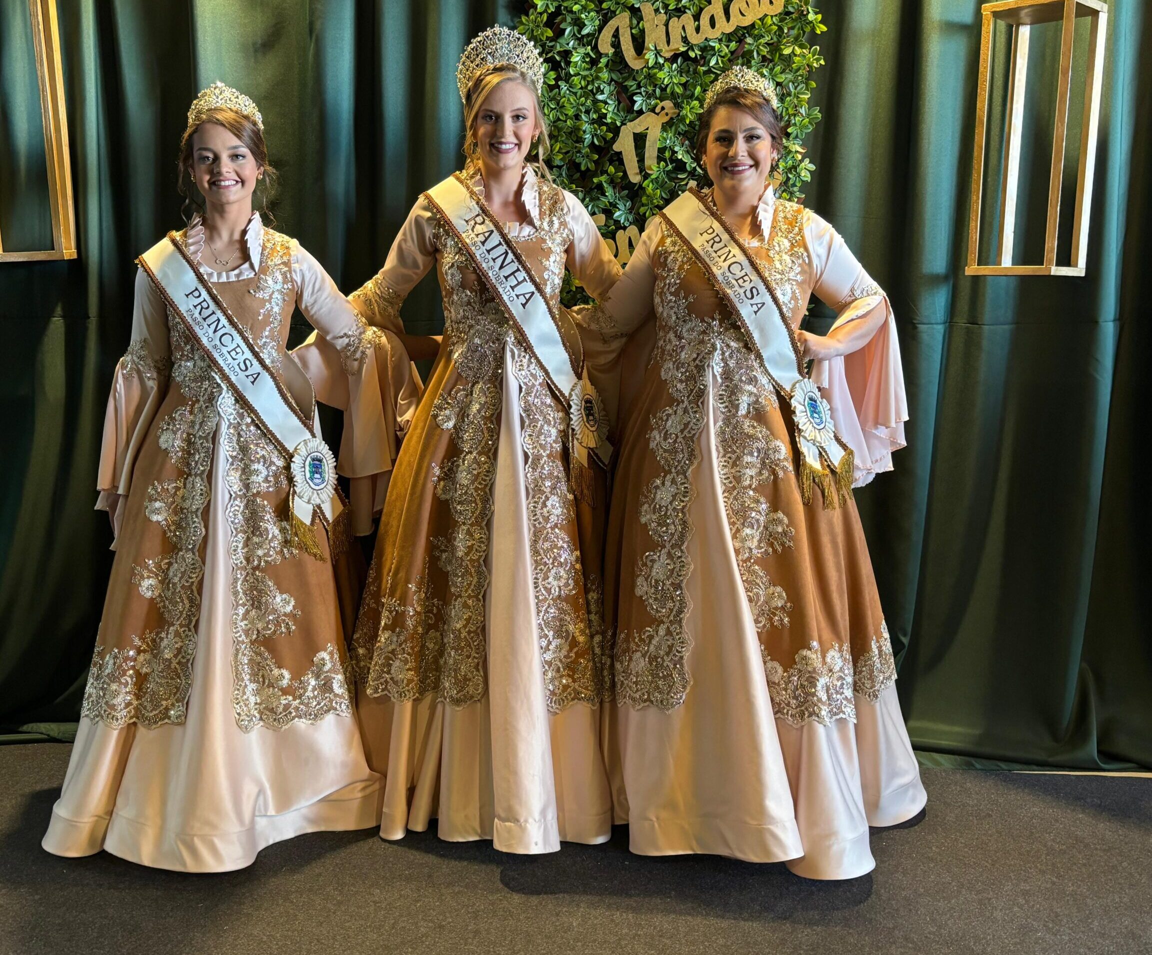 As Soberanas do município estiveram na 17ª Fenachim, em Venâncio Aires, para participar do Encontro Estadual de Soberanas, estreando seus trajes oficiais.