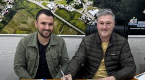 O Prefeito Municipal Edgar Thiesen, realizou na tarde de ontem, a transmissão do cargo de Chefe do Executivo Municipal para o Vice-Prefeito Jânder de Carvalho Thisen.